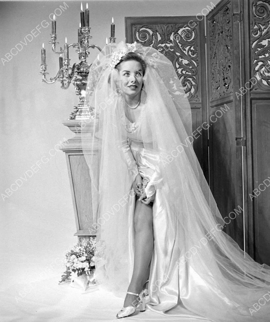 beautiful Colleen Townsend adjusts her bridal gown garter 8b20-10831